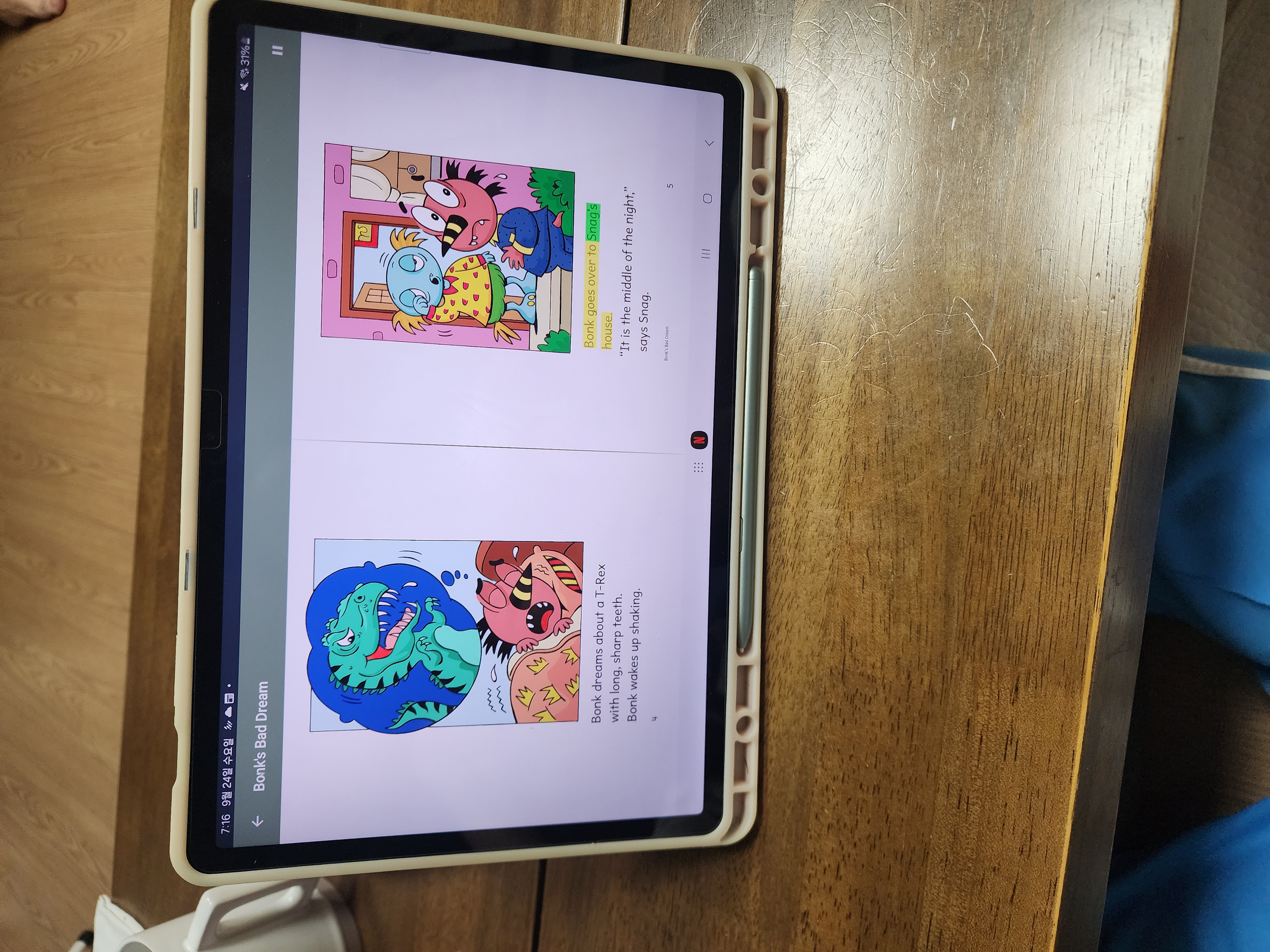 라즈키즈 무료 체험을 했어요. 10월1일까지했어요. 아이가 하기앞서서 먼저 봤고, 전부 체험해보진 못했지만, 단계별 세분화되어있고, 하이라이트 로 되면서 천천히 책을 읽어주는부분이 마음에 들었어요. 약간 스콜라스릭 리더스북 느낌? 집에서 영어책 보려면 아이와 씨름하기 너무힘든데 10~15분정도면 책 몇권을 읽어주니 편하긴해요. 탭으로도 보여줬고 이북리더기로도 보여주었는데 이북리더기에서는 잔상이 남아 태블릿으로 보여주는게 좋더라고요.