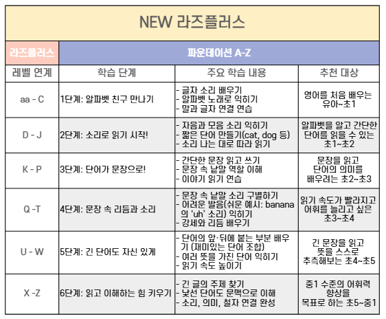라즈키즈의 파닉스와 문해력 강화 집중 프로그램으로,